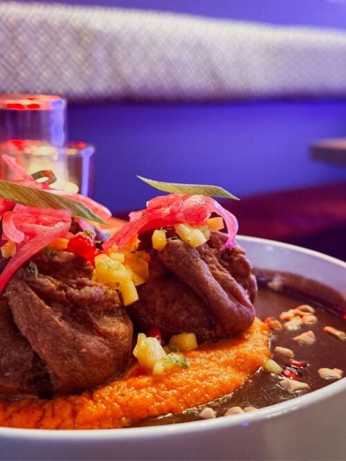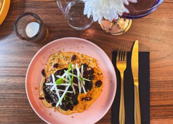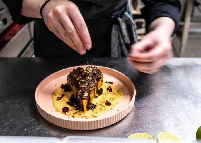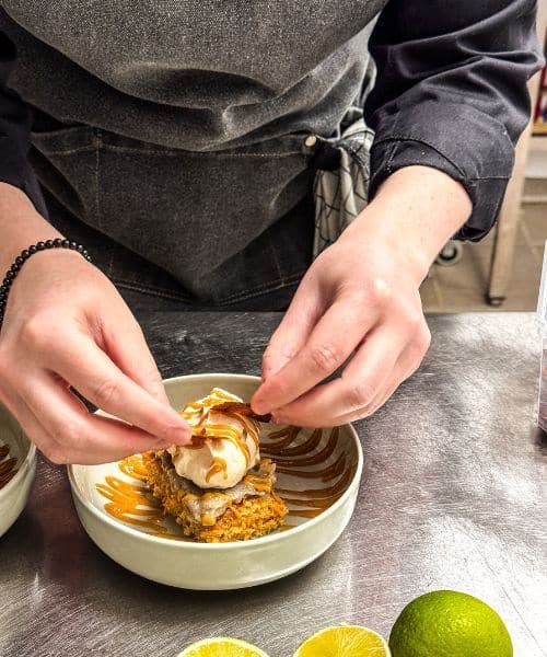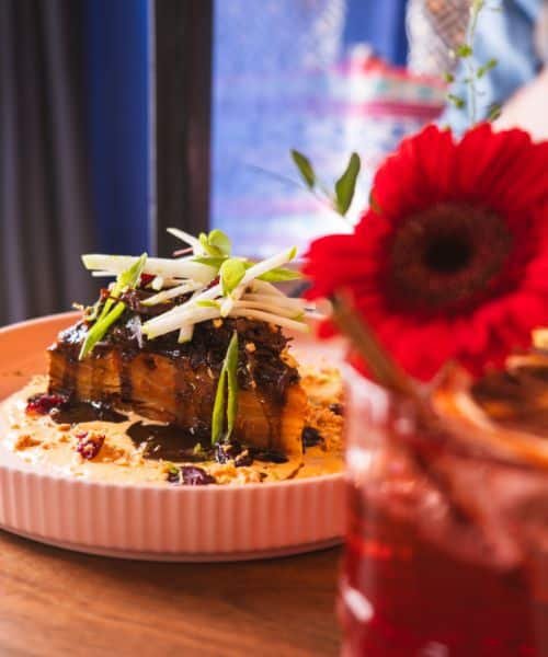 Guidée par ses inspirations du monde, la cheffe signe une cuisine fusion : des ingrédients venus d’ailleurs, revisités à son goût, pour des assiettes toujours gourmandes, inventives et raffinées.